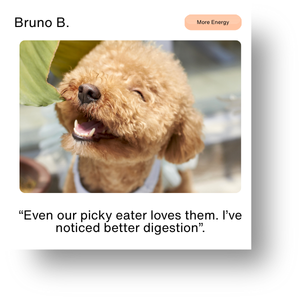 Probiotics for dogs contribute to overall happiness by supporting various aspects of their health and well-being. Probiotics help maintain a balanced gut microbiome, which is linked to mood and behavior through the gut-brain axis. A healthy gut can positively influence mood and reduce stress levels in dogs. Prebiotics provide nourishment for probiotics, enhancing their effectiveness in supporting digestive health and overall comfort, which can contribute to a happier demeanor. Apple Cider Vinegar (ACV) and Papaya Juice contribute enzymes and nutrients that support digestion and nutrient absorption, promoting physical comfort and well-being. Krill Oil supplies omega-3 fatty acids (EPA and DHA), which support cognitive function and mood regulation. Together, these ingredients work synergistically to support a healthy gut, which is crucial for overall happiness and well-being in dogs.